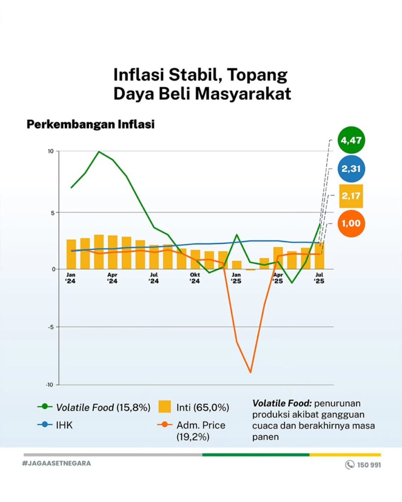 Contohnya, program bantuan sosial, subsidi, hingga inisiatif seperti makan siang gratis untuk pelajar membantu menjaga daya beli masyarakat.