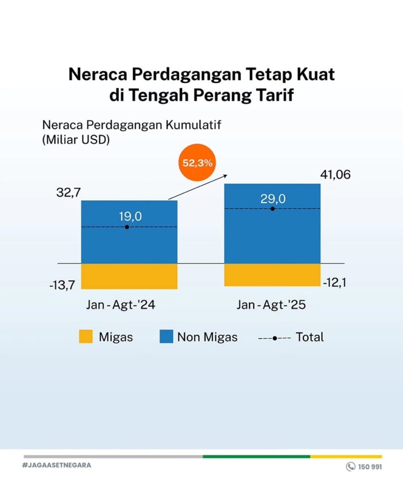 Perang tarif global memang menimbulkan tantangan besar bagi perekonomian dunia. Namun, Indonesia mampu menunjukkan resiliensi berkat kombinasi konsumsi domestik yang kuat, diversifikasi ekspor, hilirisasi industri, stabilitas keuangan, serta pembangunan infrastruktur.